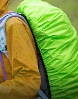 Időjárásálló ruházat (esőkabát, esetleg esőnadrág), vízálló csomagvédelem (esőhuzat vagy vízálló zsák), meleg tartalék ruházat (pl. polár vagy könnyű szigetelő kabát), valamint olyan felszerelés, amely nedves körülmények között is megbízhatóan működik.