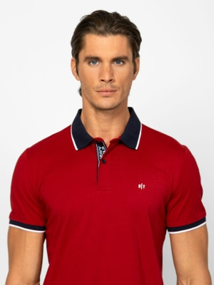 Ez a férfi galléros póló a mindennapok stílusos alapdarabja. Klasszikus szabása és elegáns gombos nyakmegoldása időtlen megjelenést biztosít, míg a logózott gombolópánt és a kis nyomott márkajelzés modern karaktert ad a darabnak. Az oldalhasíték növeli a kényelmet, a csíkos, bordázott ujjpasszé pedig sportos lezserséget kölcsönöz. A 100% pamut single jersey anyag kellemes tapintású és jól szellőzik, így tökéletes választás mindennapi viseletre, akár munkába, akár hétvégi programokra.