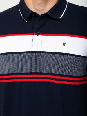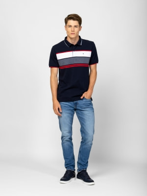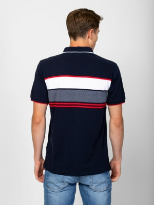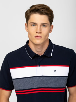 Ez a férfi galléros póló a klasszikus elegancia és a sportos megjelenés tökéletes ötvözete. A mellrészen futó ritmikus csíkozás és a 3D hatású márkajelzés modern karaktert ad, miközben a gombos gallér és az oldalhasíték a hagyományos polo stílust idézi. A bordázott ujjpasszé kényelmes illeszkedést biztosít, a 100% pamut piké anyag pedig puha tapintású és jól szellőzik. Ideális választás mindennapi viselethez, ha a sportos elegancia híve vagy.